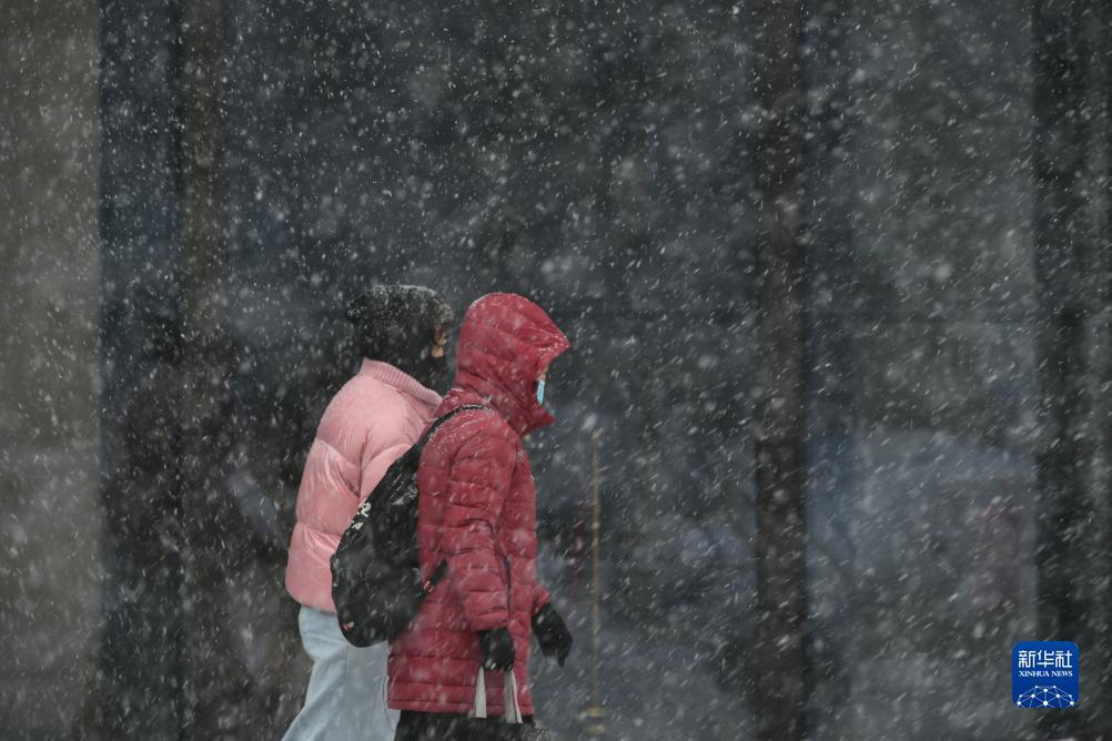 11月6日,在沈阳市浑南区,行人在雪中行走。