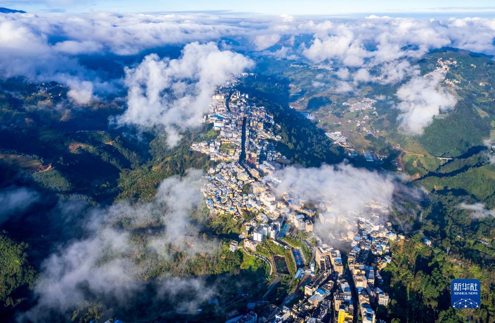 11月19日拍摄的绿春县城主街上的哈尼长街古宴(无人机照片)。