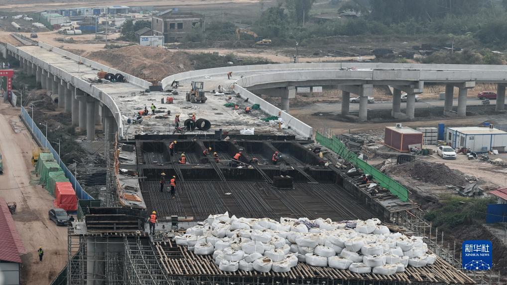 工人在铺设玉林北站的进站道路(11月22日摄)。