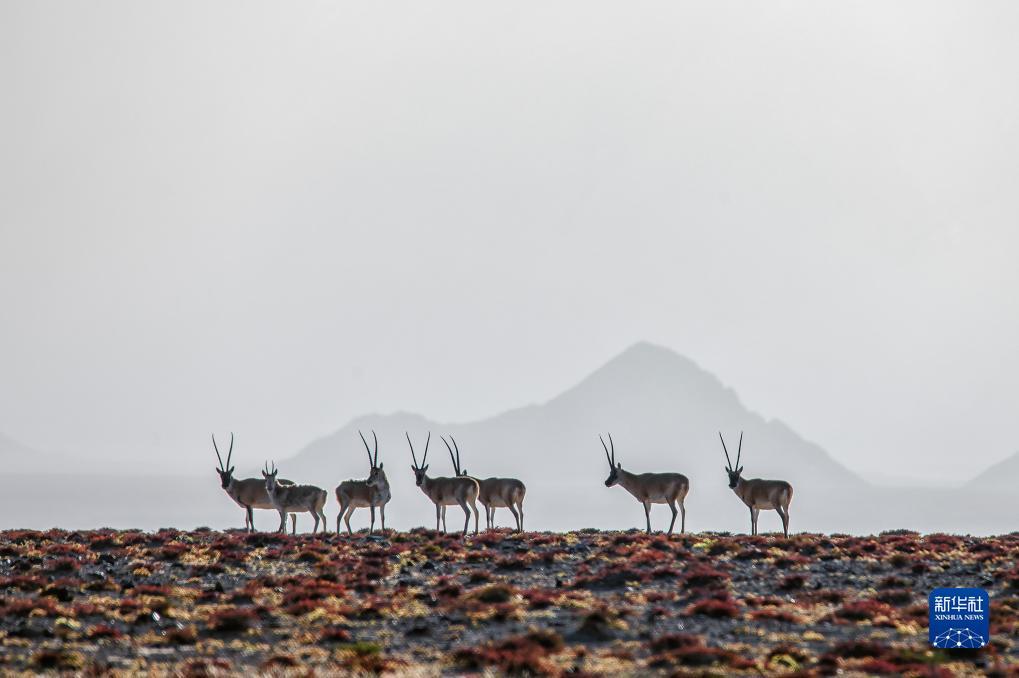 阿尔金山国家级自然保护区的藏羚(9月14日摄)。