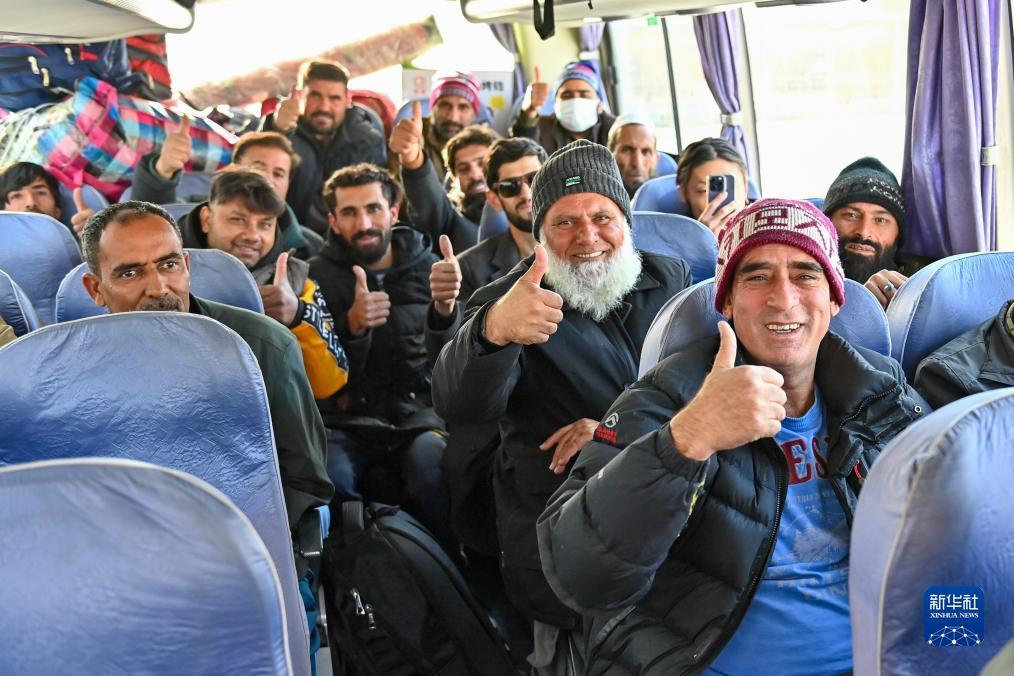 新疆红其拉甫口岸,出境旅客在国际道路旅客班车上等待发车(11月6日摄)。