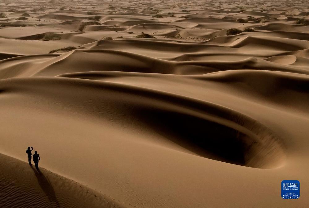 新疆喀什地区麦盖提县的沙漠风光(9月7日摄,无人机照片)。