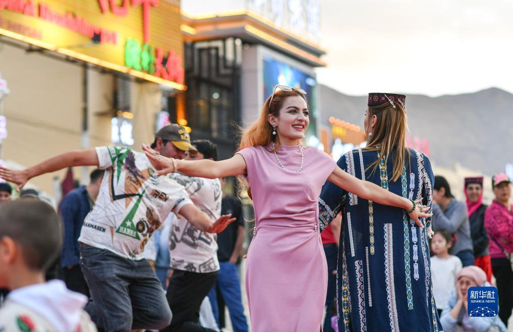 人们在新疆塔什库尔干塔吉克自治县跳舞(8月31日摄)。