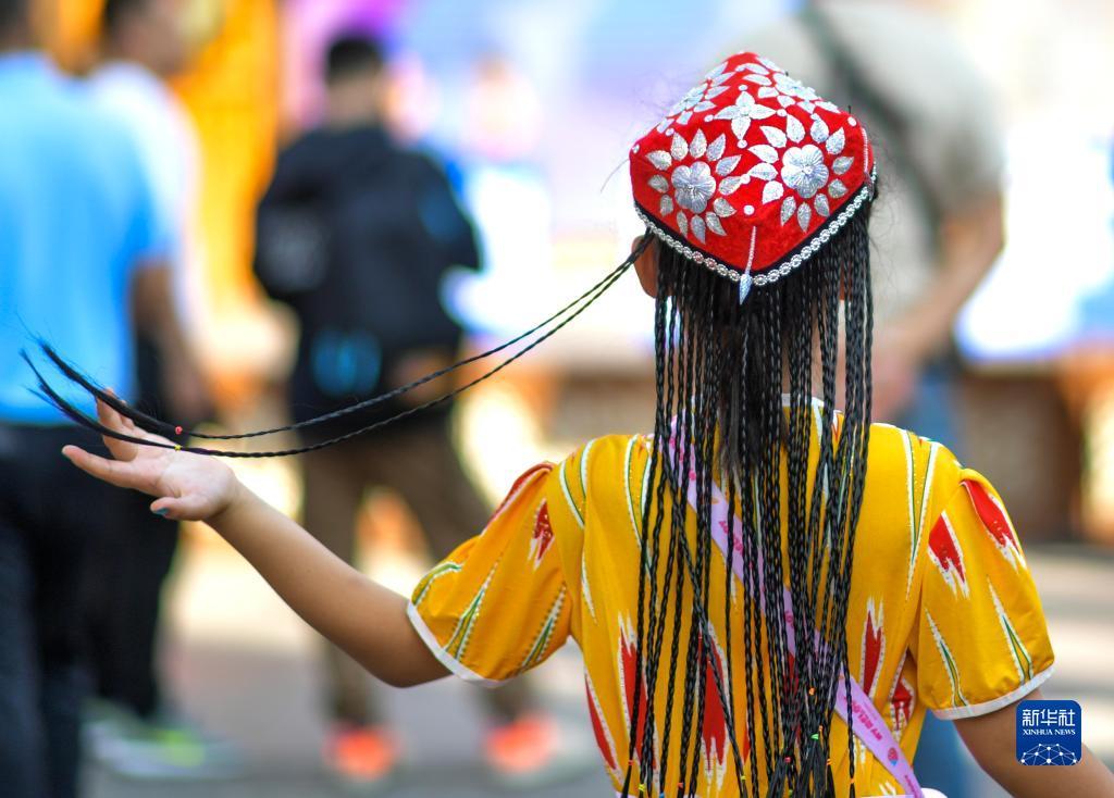 乌鲁木齐市新疆国际大巴扎,一名小游客在游览观光(8月16日摄)。