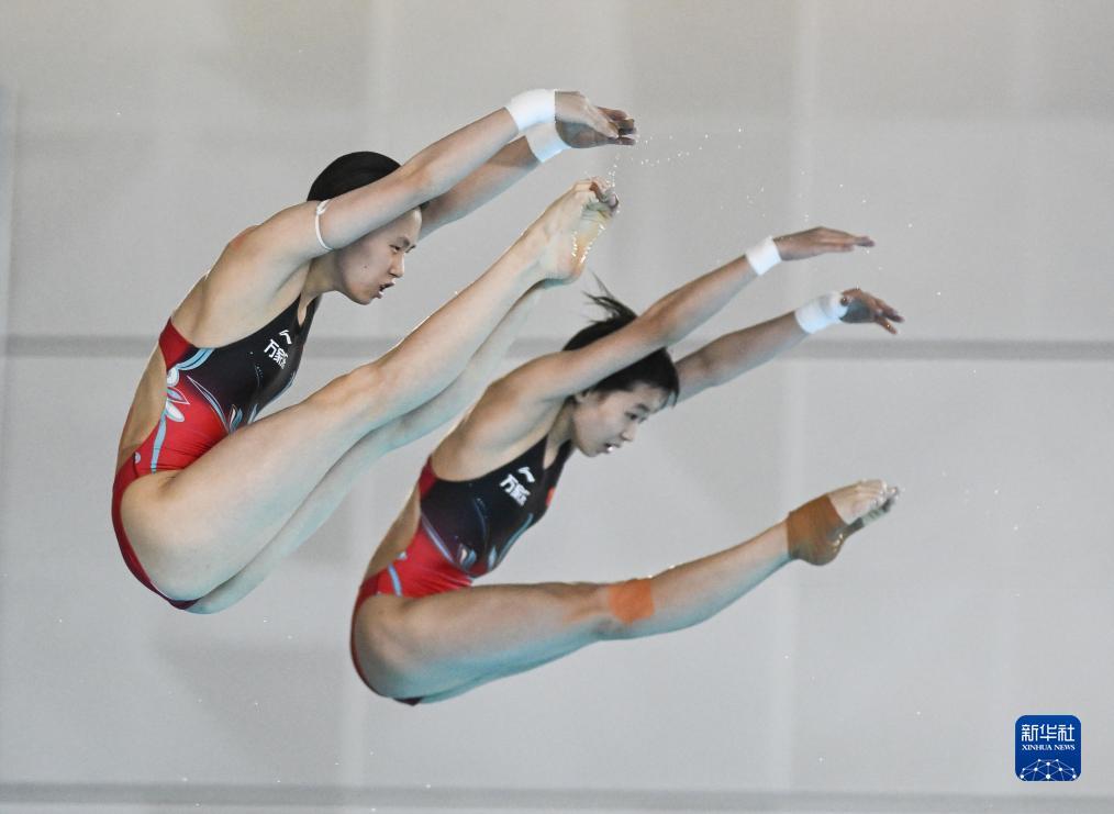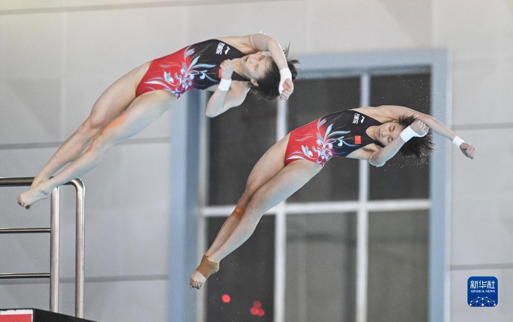 当日,在武汉体育中心举行的2023年全国跳水锦标赛暨巴黎奥运会、多哈世锦赛选拔赛女子双人10米跳台决赛中,全红婵(广东海印队)/陈芋汐(上海队)以354.66分的成绩获得冠军。