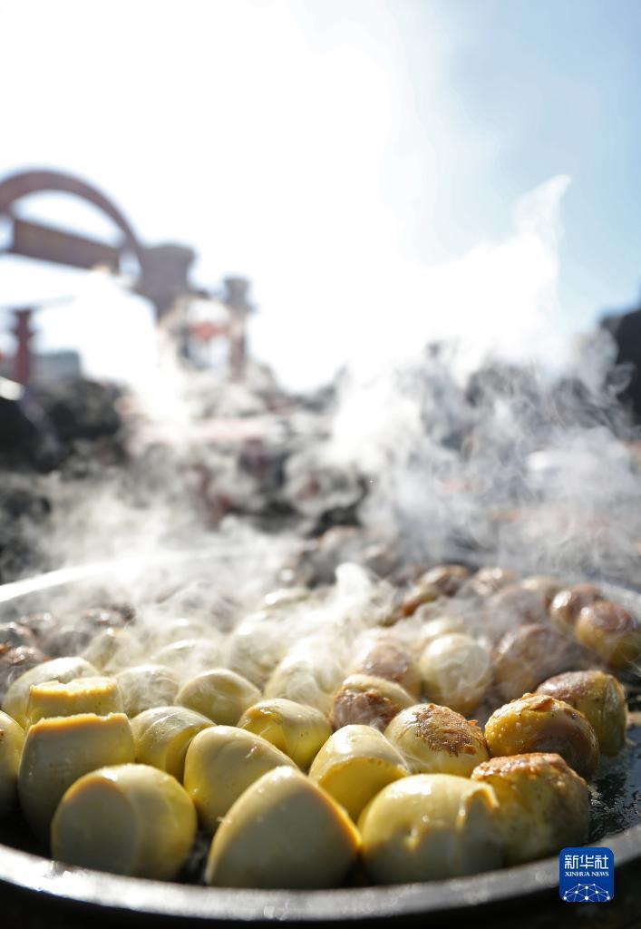这是在红旗大集上拍摄的当地小吃煎实蛋(11月28日摄)。