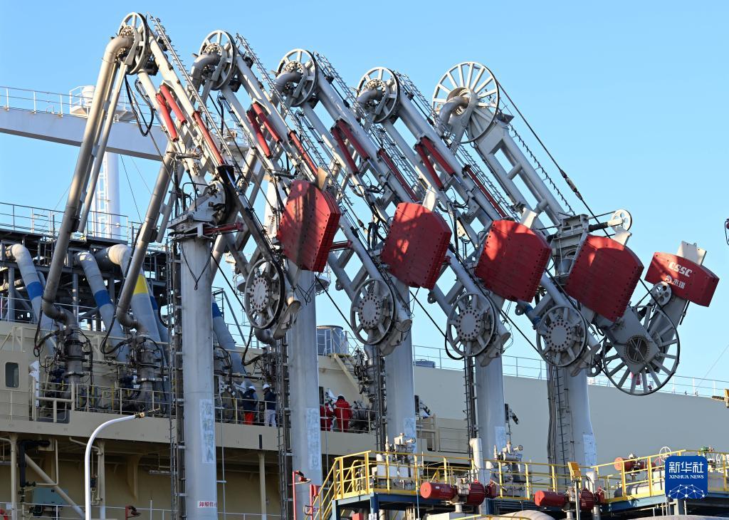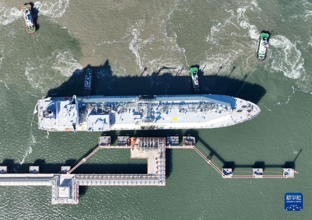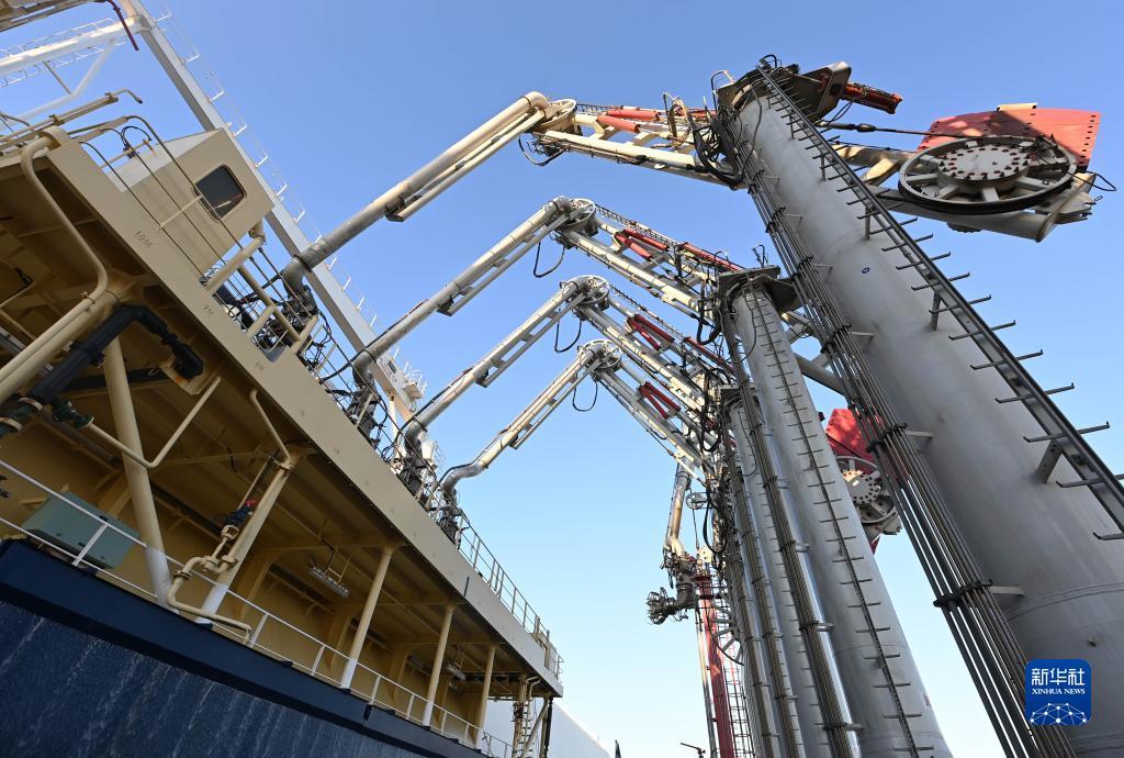 12月1日,“少林”号LNG运输船靠泊在中国石化天津LNG接收站2号泊位进行卸船作业。