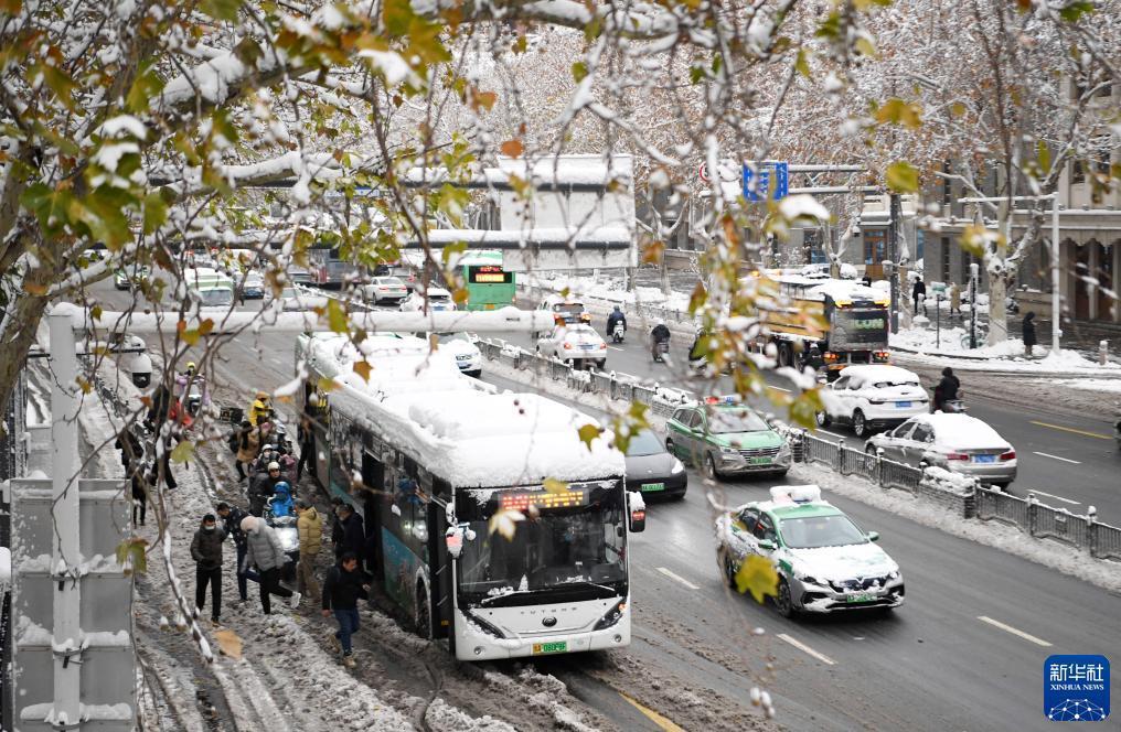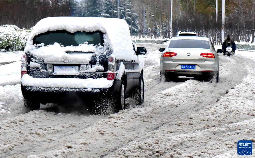 12月11日,车辆在雪中缓慢行进。