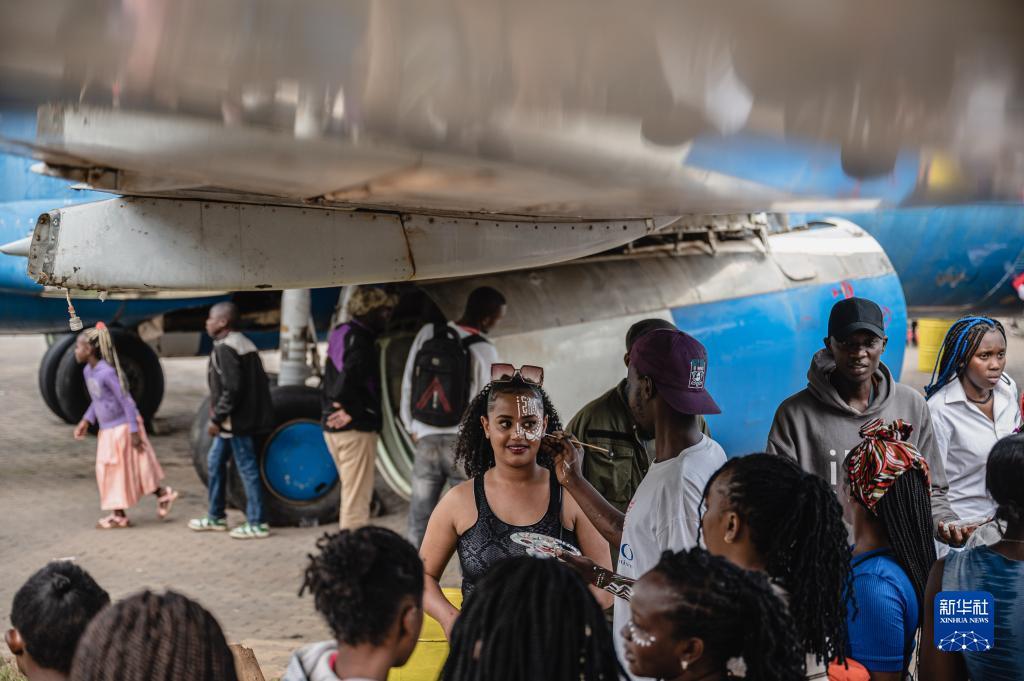 12月16日,市民在肯尼亚首都内罗毕乌胡鲁公园内体验脸部涂鸦。
