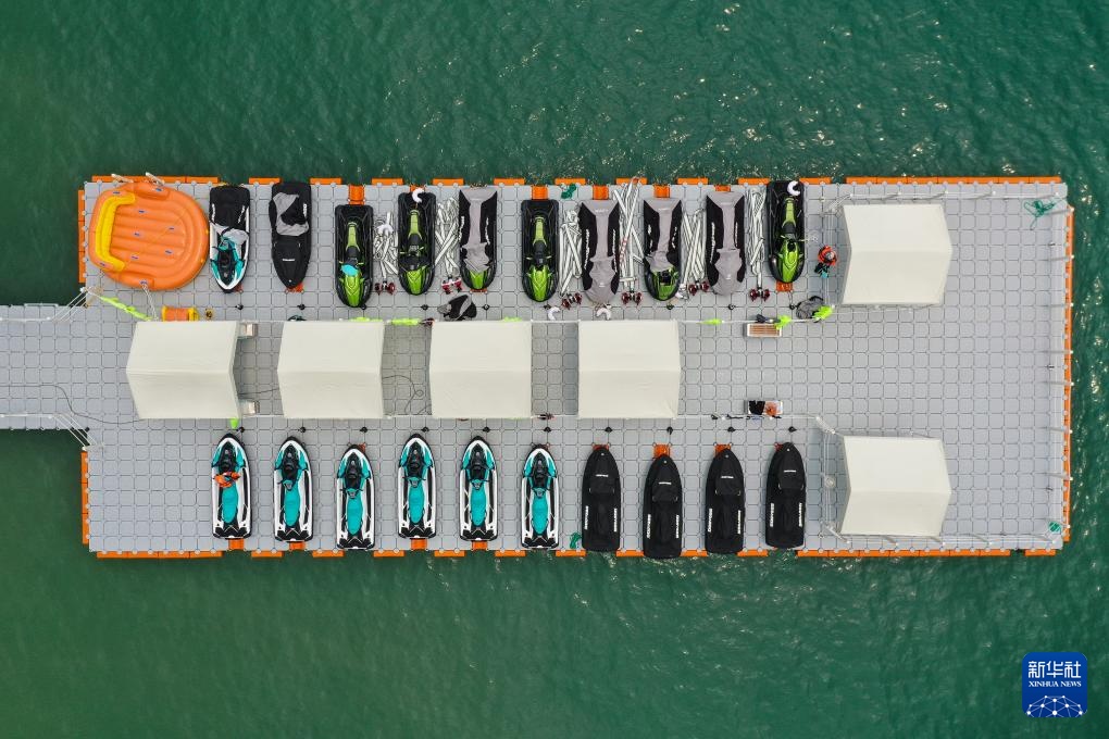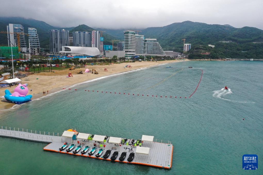 4月29日拍摄的深圳小梅沙度假区滨海公园的水上游乐设施(无人机照片)。