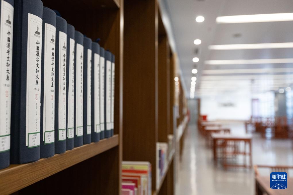 这是5月5日在塞尔维亚贝尔格莱德拍摄的中国文化中心图书馆。
