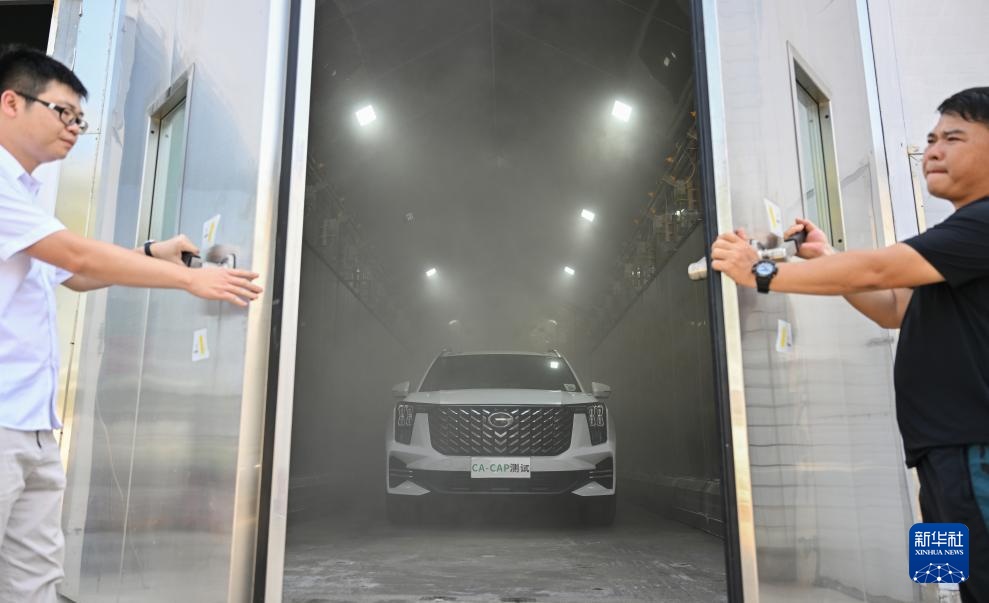 5月7日,工作人员对汽车进行盐雾腐蚀试验。