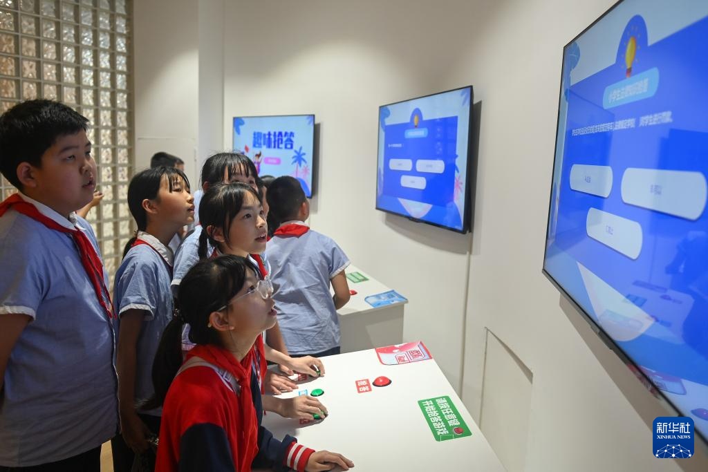 5月10日,仙居县安洲小学的学生在未成年人法治教育基地体验普法设备,了解法律知识。