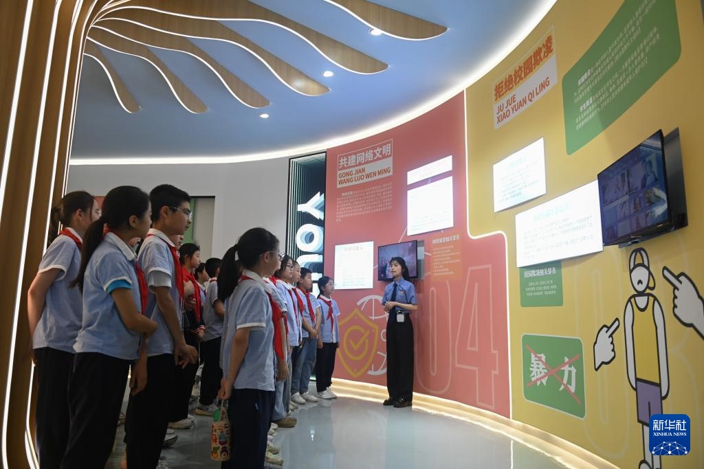 5月10日,仙居县安洲小学的学生在未成年人法治教育基地了解防校园欺凌的法律知识。