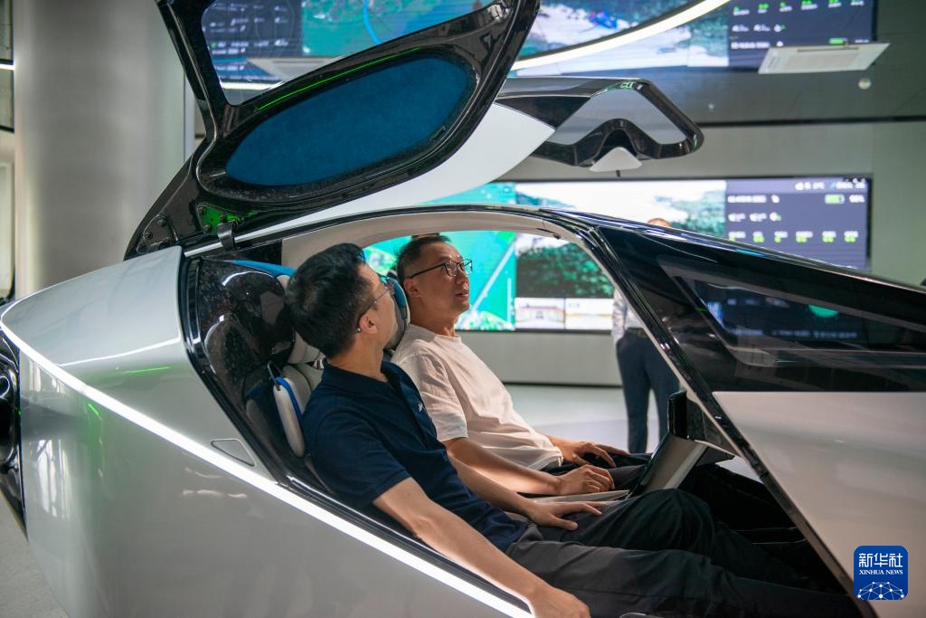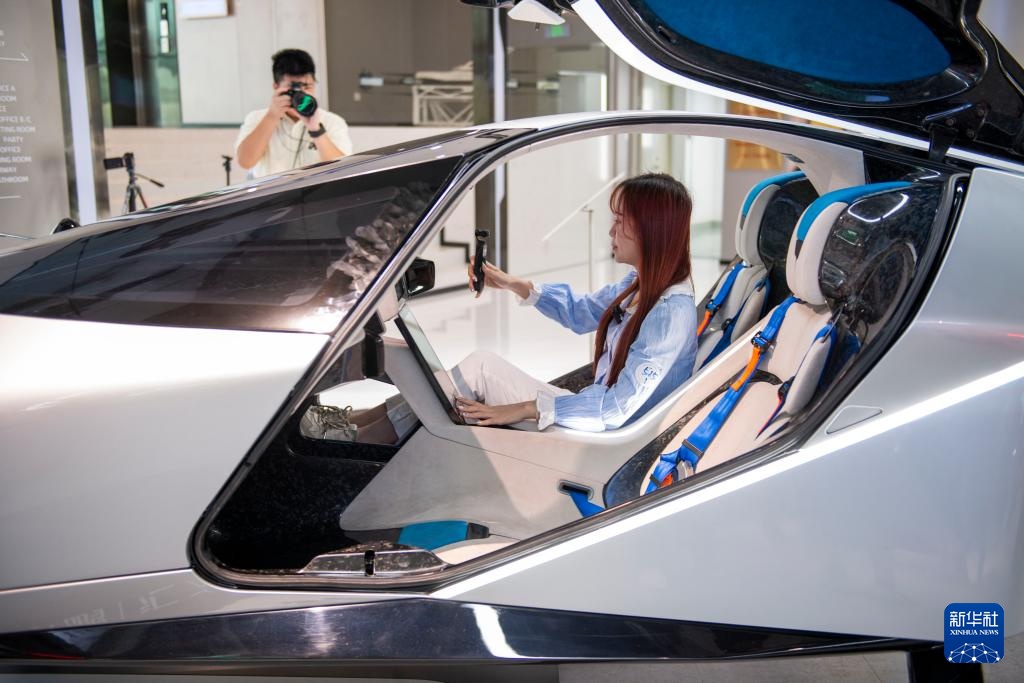 5月15日,参观者在广州市番禺区小鹏汇天总部体验飞行汽车旅航者X2。