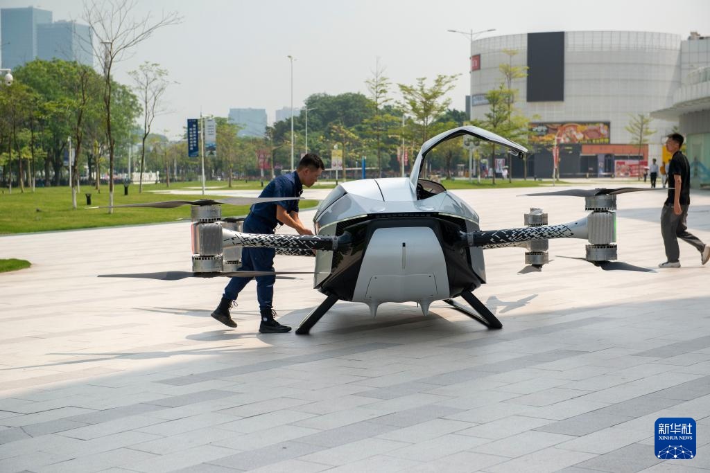 5月15日,在广州市番禺区小鹏汇天总部,工作人员对飞行汽车旅航者X2进行飞行演示前的准备。