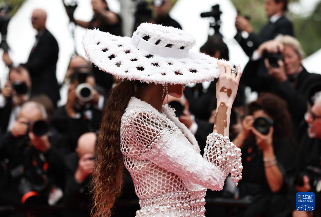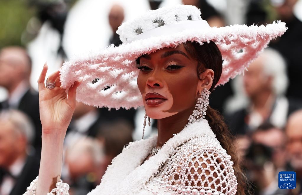 5月20日,在法国南部小城戛纳举行的第77届戛纳国际电影节上,模特温妮·哈洛抵达主竞赛单元影片《飞黄腾达》的首映礼红毯。