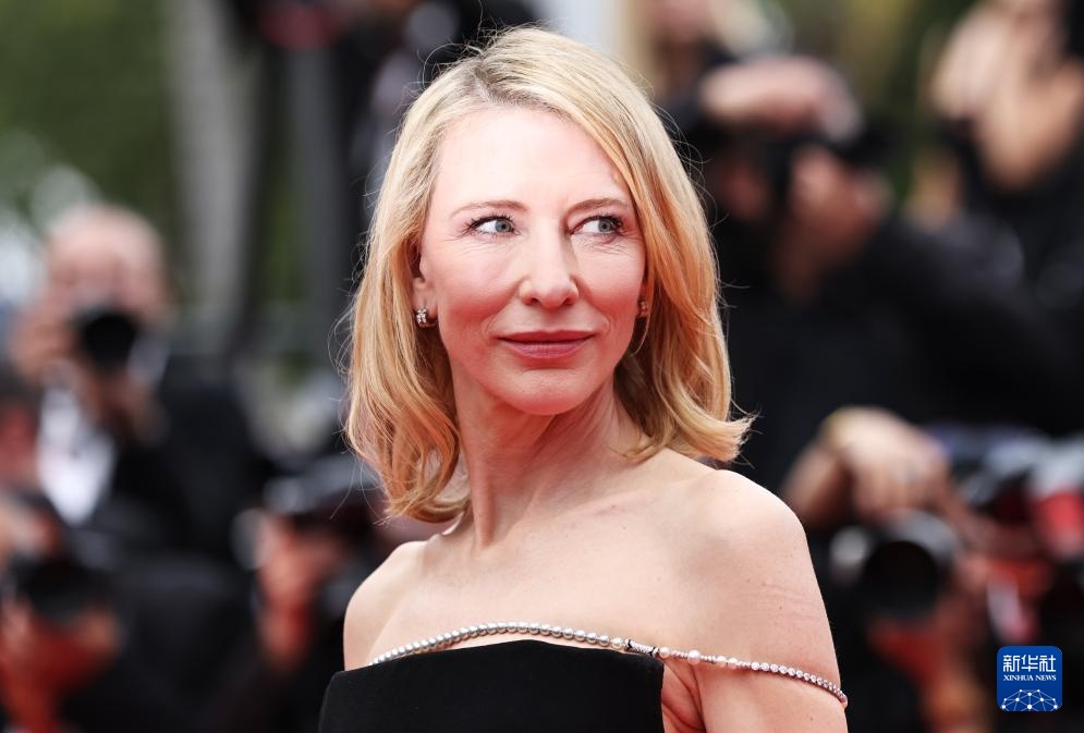 5月20日,在法国南部小城戛纳举行的第77届戛纳国际电影节上,演员凯特·布兰切特抵达主竞赛单元影片《飞黄腾达》的首映礼红毯。