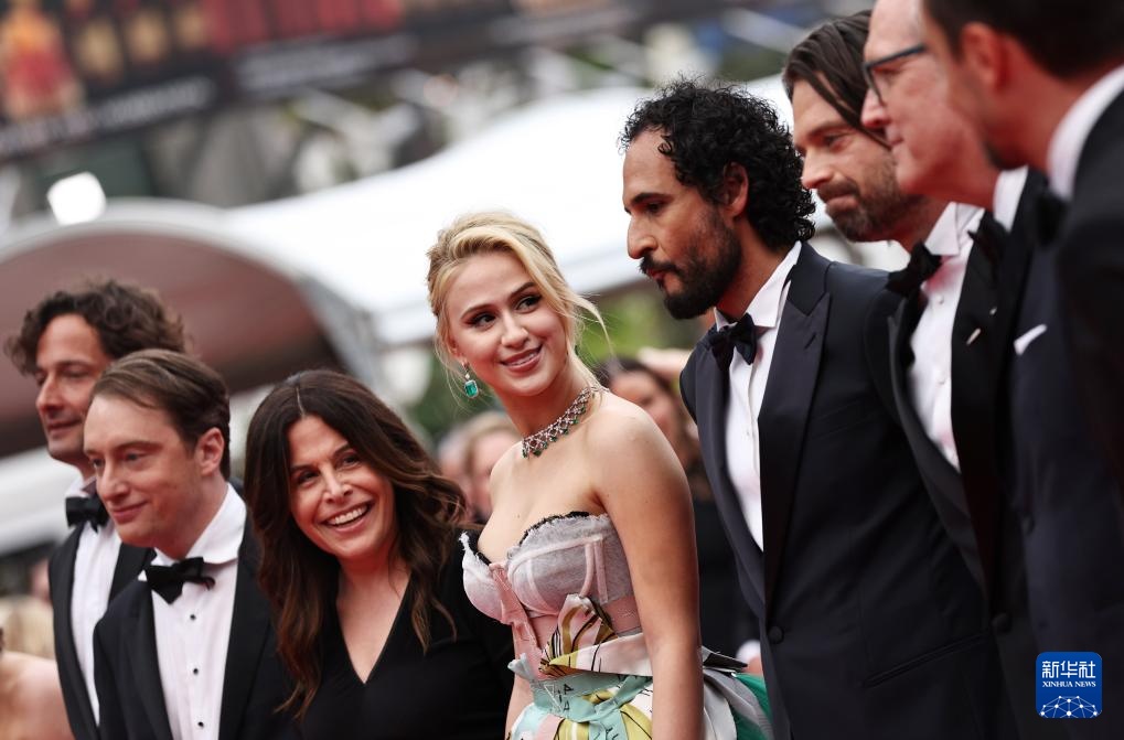 5月20日,在法国南部小城戛纳举行的第77届戛纳国际电影节上,导演阿里·阿巴西(左四)与主创人员抵达主竞赛单元影片《飞黄腾达》的首映礼红毯。