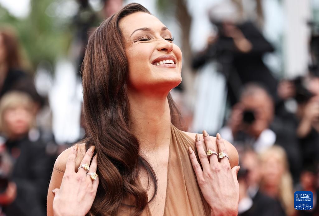 5月20日,在法国南部小城戛纳举行的第77届戛纳国际电影节上,模特贝拉·哈迪德抵达主竞赛单元影片《飞黄腾达》的首映礼红毯。