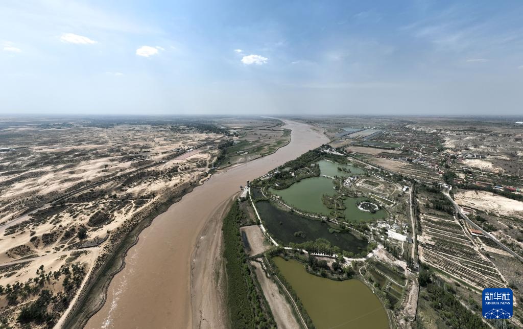 这是5月22日拍摄的黄河内蒙古托克托县河段两岸景色(无人机照片)。