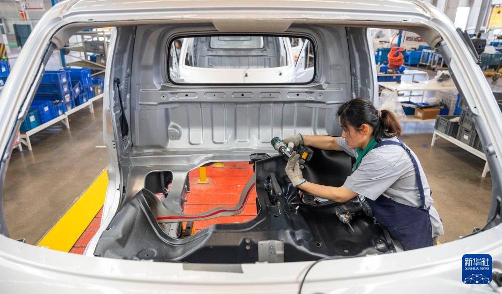 5月23日,工人在日照市五莲县五征集团总装车间进行汽车内饰安装。