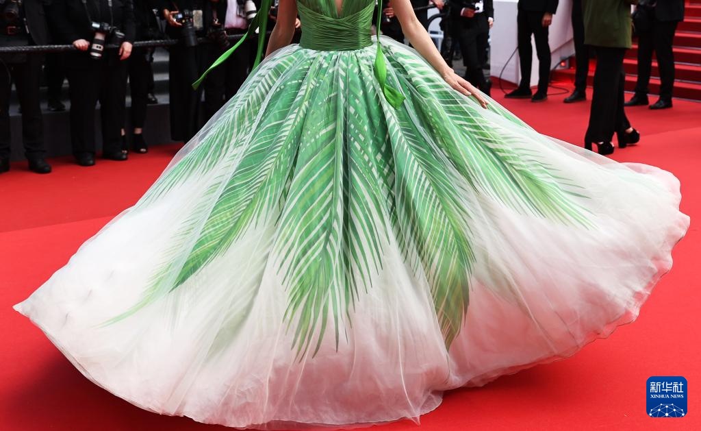 5月23日,在法国南部小城戛纳举行的第77届戛纳国际电影节上,一名嘉宾踏上主竞赛单元影片《狂爱》的首映式红毯。