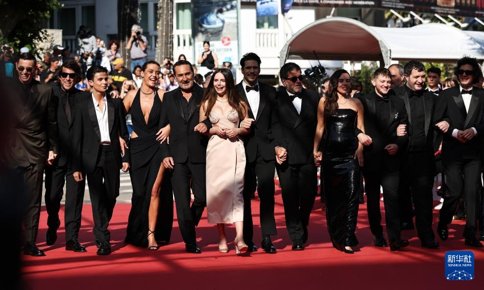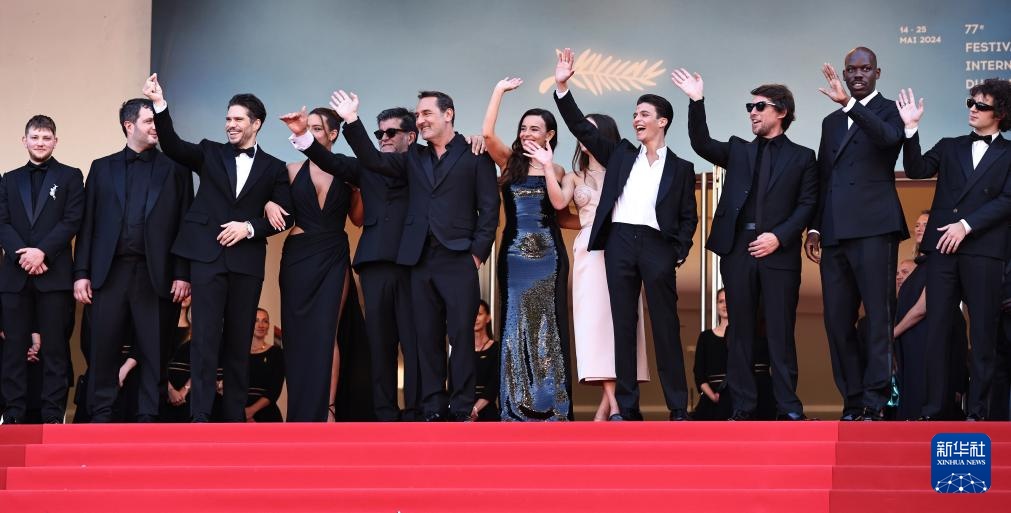 5月23日,在法国南部小城戛纳举行的第77届戛纳国际电影节上,主竞赛单元影片《狂爱》的主创人员踏上首映式红毯。