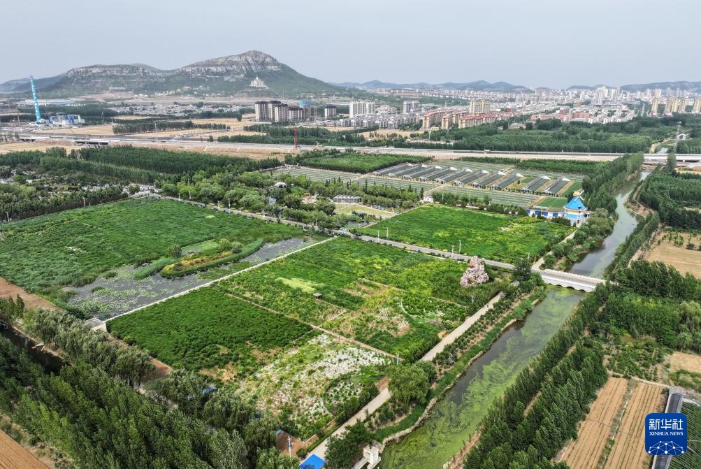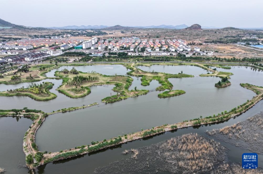 这是6月4日拍摄的东平县稻屯洼人工湿地水质净化工程,该工程是南水北调东线治污工程的重要组成部分,日处理污水规模达5万吨(无人机照片)。