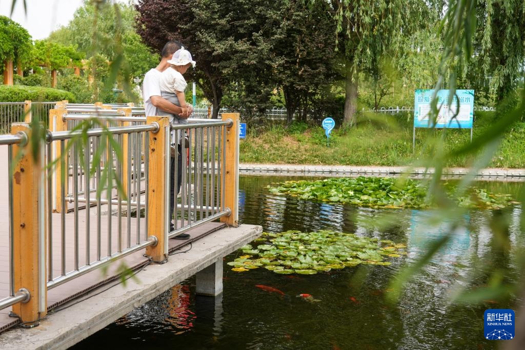 6月4日,当地居民在东平县稻屯洼人工湿地水质净化工程内游玩。该工程是南水北调东线治污工程的重要组成部分,日处理污水规模达5万吨。