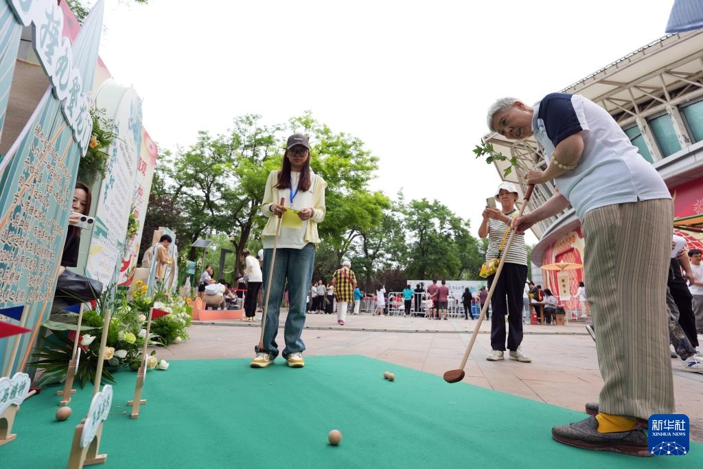 6月5日,游客在2024龙潭端午文化节活动上体验“捶丸”。