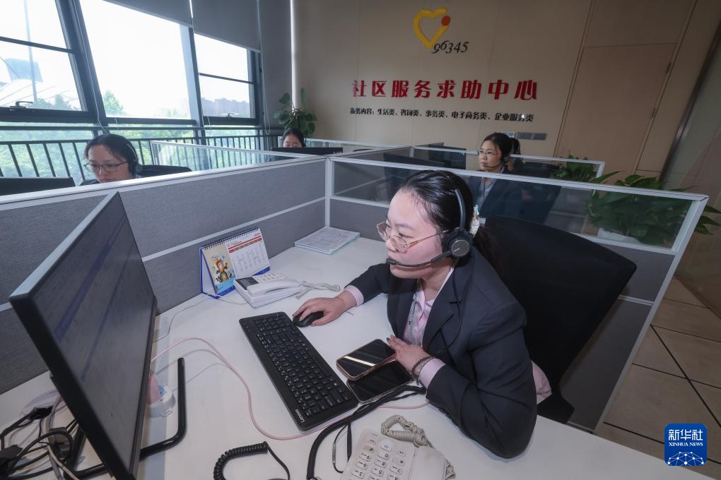 6月7日,在嘉兴市96345社区服务求助中心,工作人员在接听热线电话。