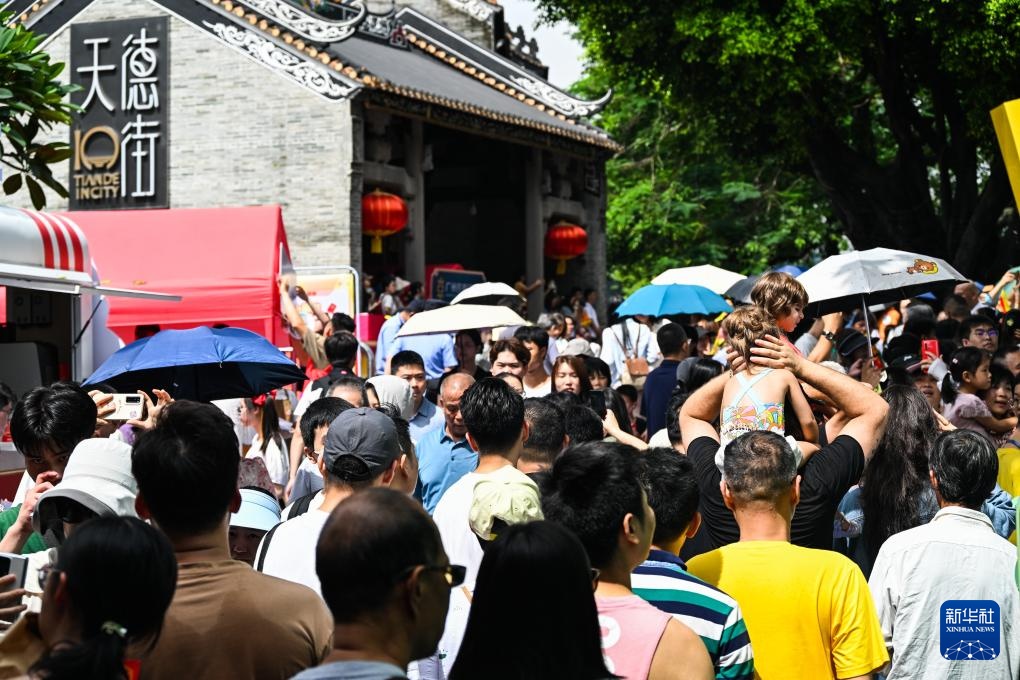 6月10日,国内外游客汇聚在猎德观赏“龙船景”。“龙船景”是广府地区水乡在端午期间举办的一种民俗活动。