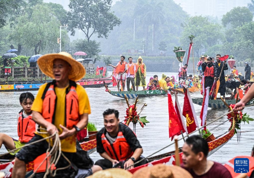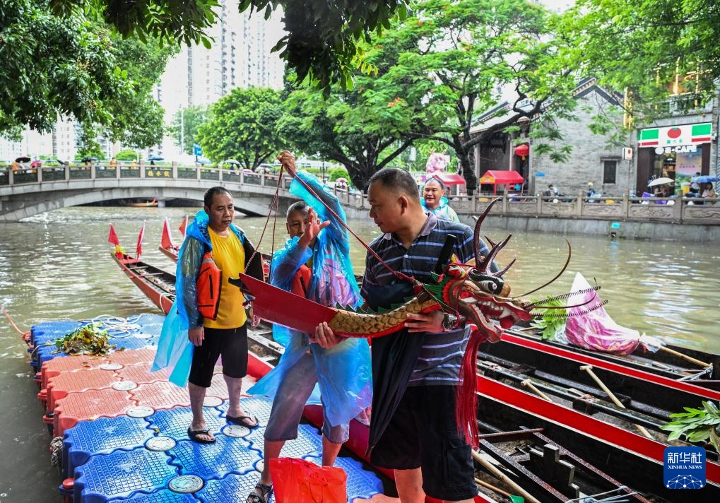 猎德村村民举行活动,为端午期间的“龙船景”做准备(6月1日摄)。