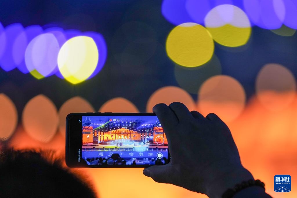 6月10日,观众在《遇见·哈尔滨》演出现场用手机拍摄。