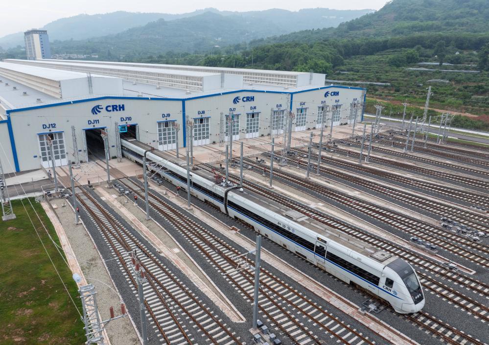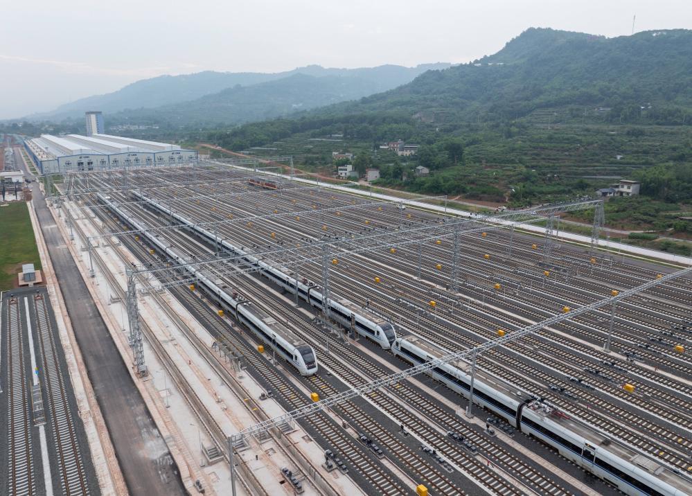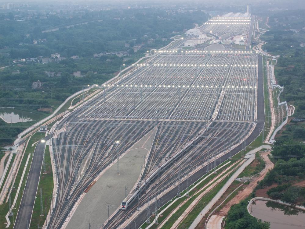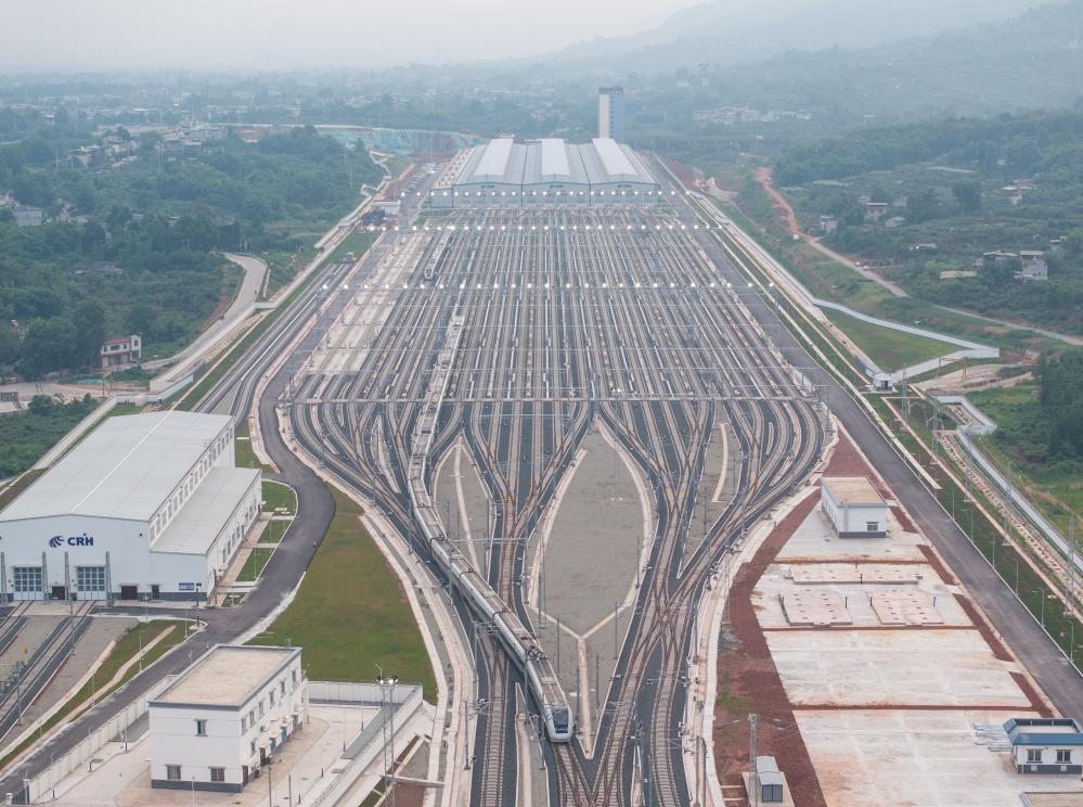 6月14日,随着首列动车组驶入天府动车所,西南地区最大动车所建成投用。