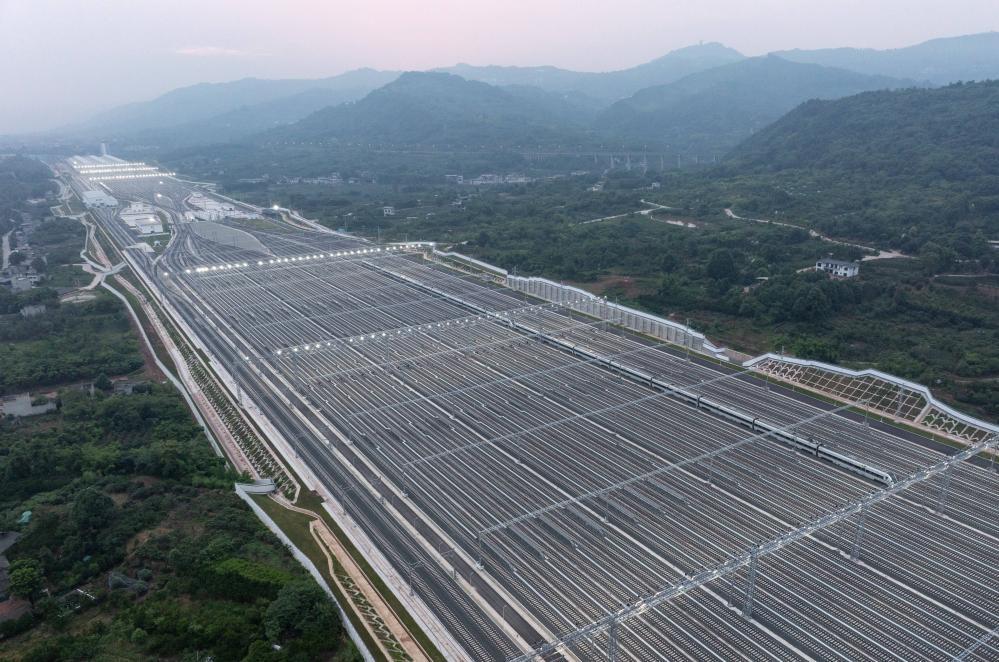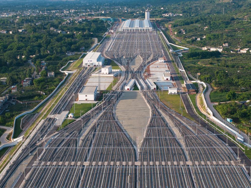 俯瞰天府动车所(6月11日摄,无人机照片)。
