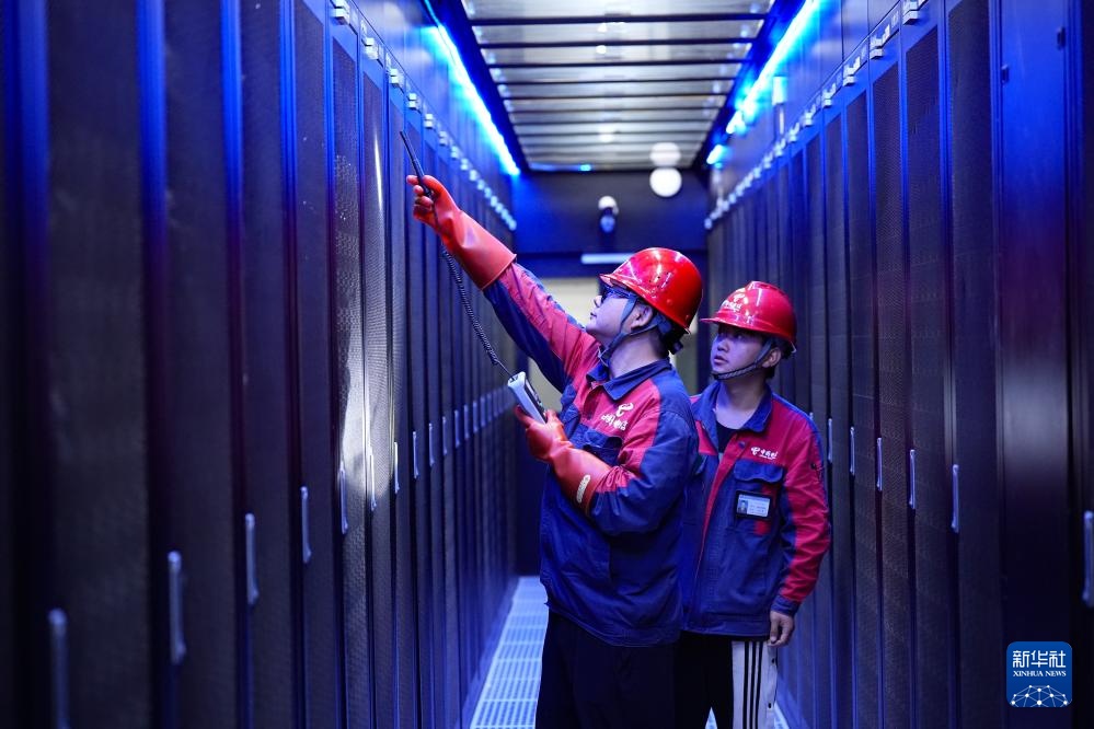 6月14日,工作人员在东数西算(贵州)智算中心内巡检。