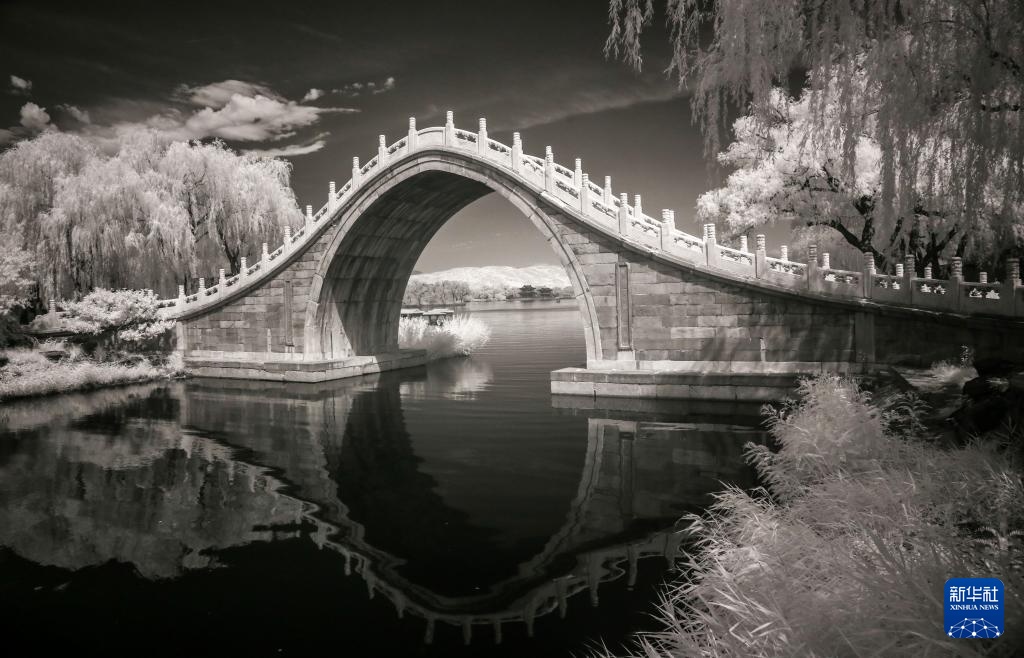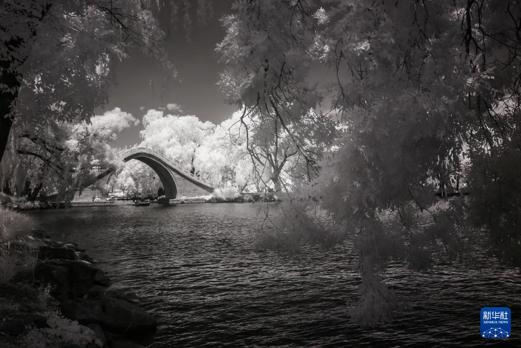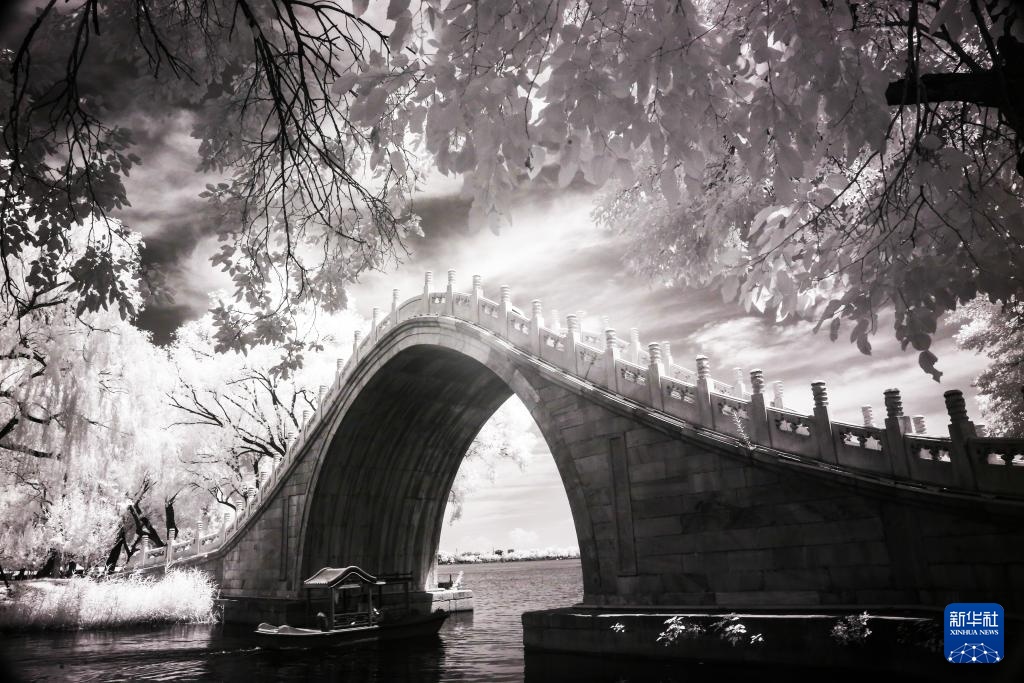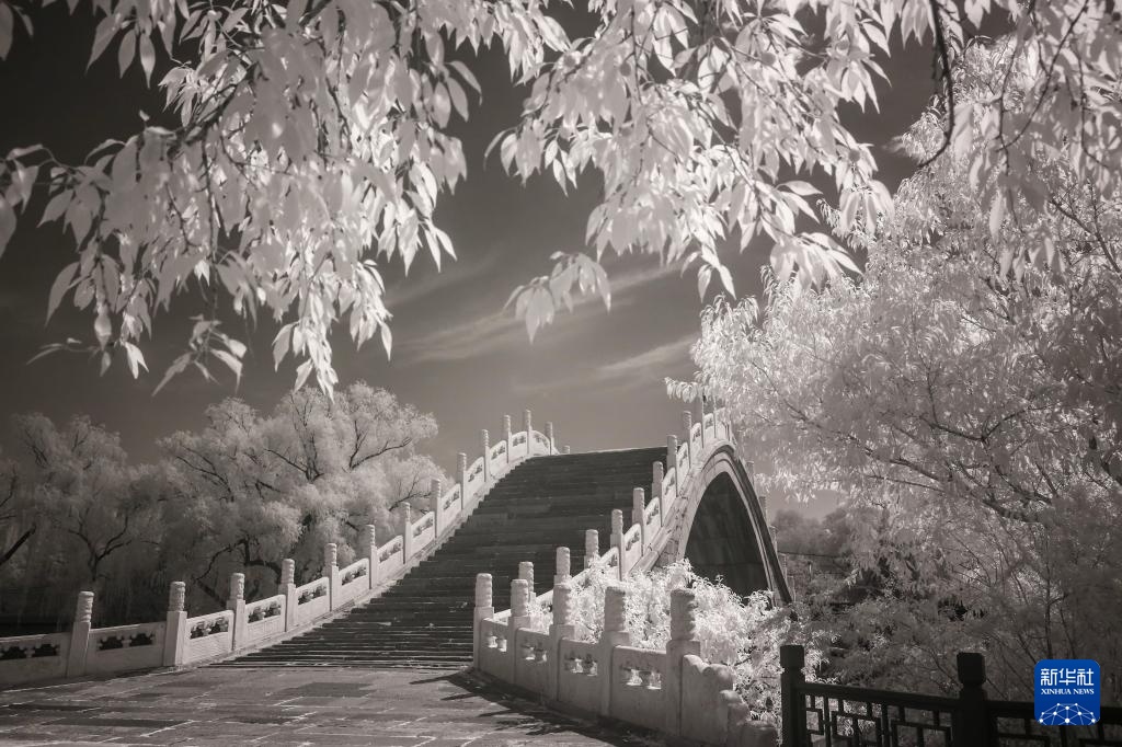 这是红外摄影记录的颐和园练桥景色(6月14日摄)。