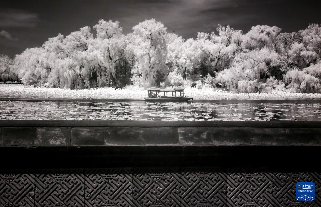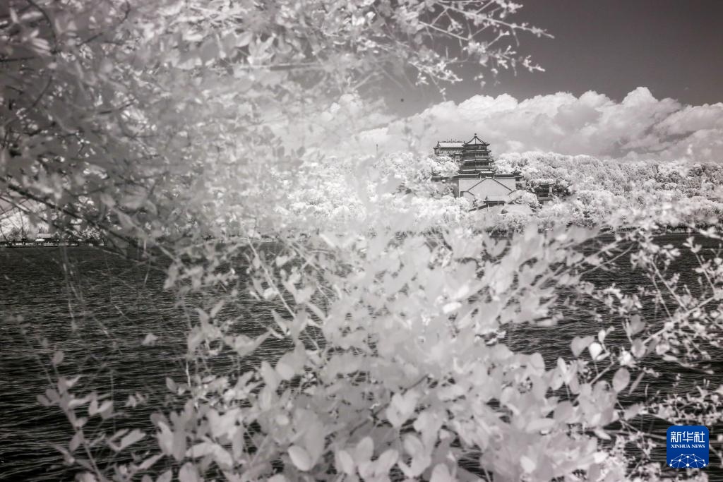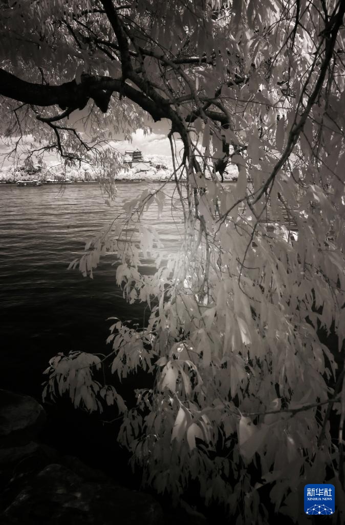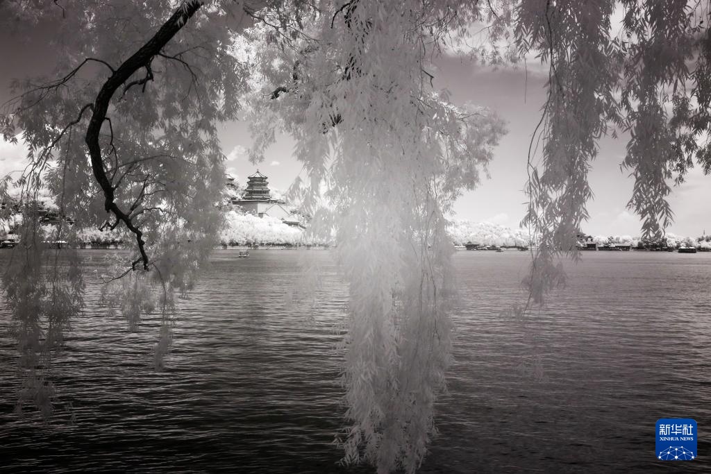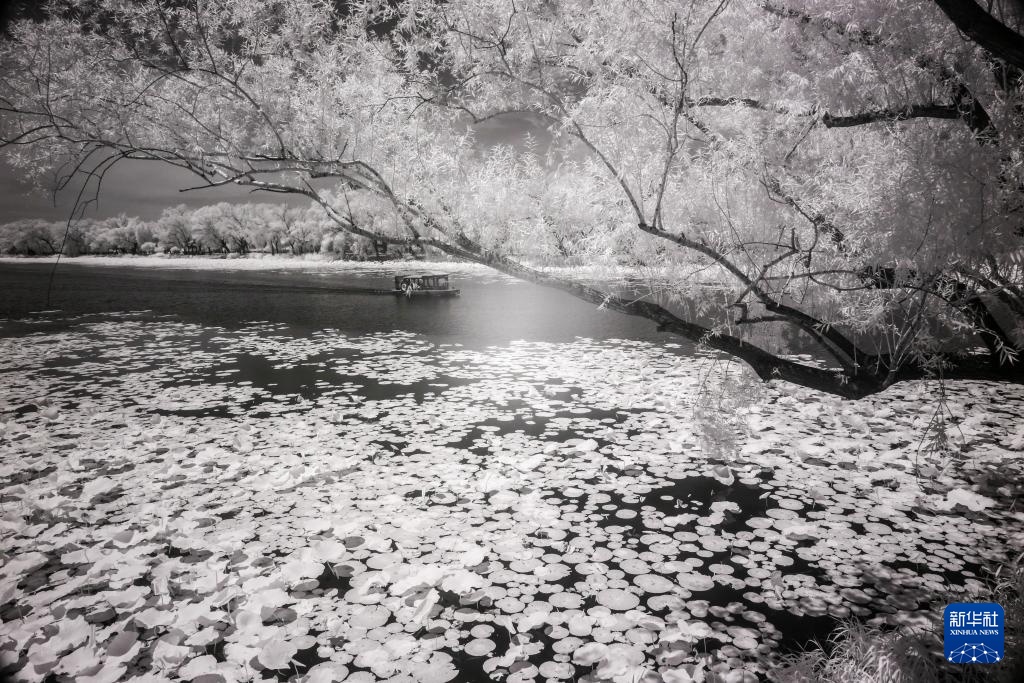 夏日的颐和园风光旖旎。西堤垂柳、湖波荷丛,在红外摄影独特的表现力下,如水墨画般被记录下来。在这种特殊视觉效果中,绿色植物通体透白,如同火树银花,展现出颐和园别样的夏日风采。