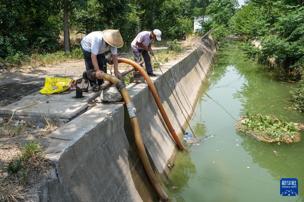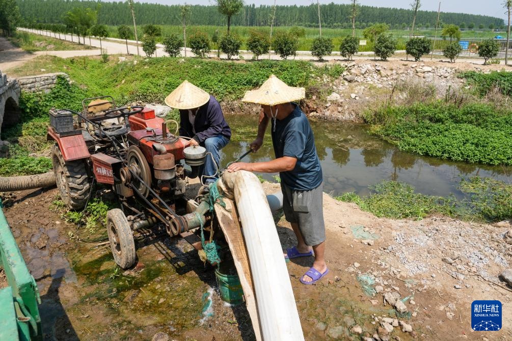 6月20日,肥城市石横镇保安村村民在抽水灌溉田地。
