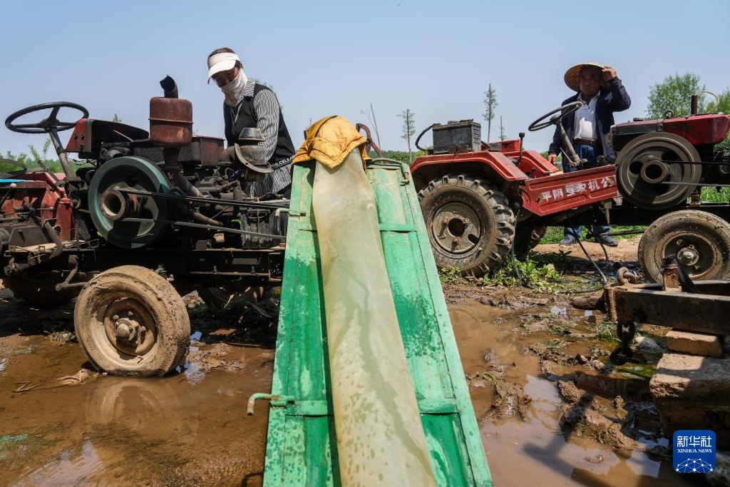 6月20日,肥城市石横镇保安村村民在抽取黄河水灌溉田地。