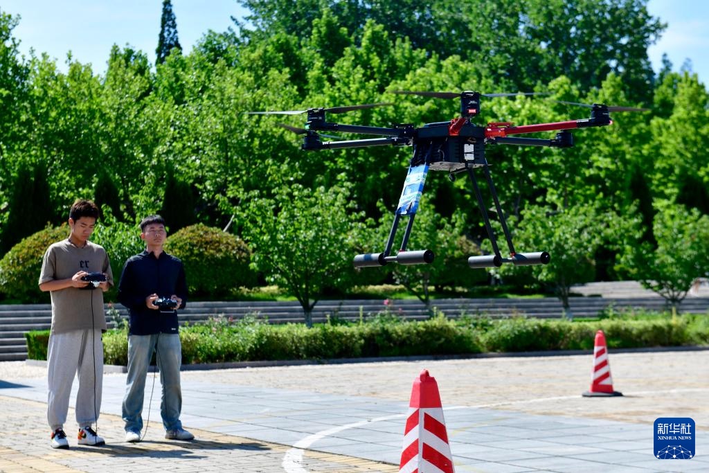 6月20日,在日照职业技术学院,通用航空系的学生在练习无人机飞控。