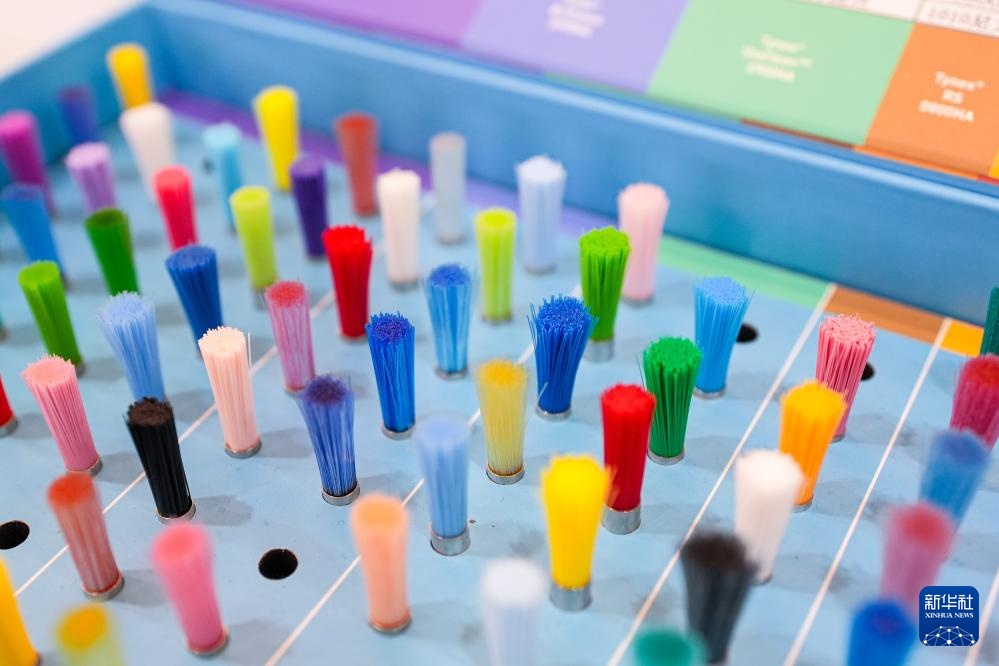 在扬州市杭集镇三峰刷业有限公司展示厅内拍摄的各种牙刷刷丝(6月21日摄)。