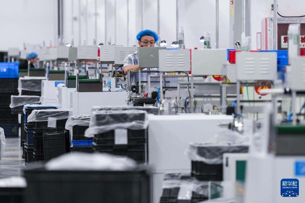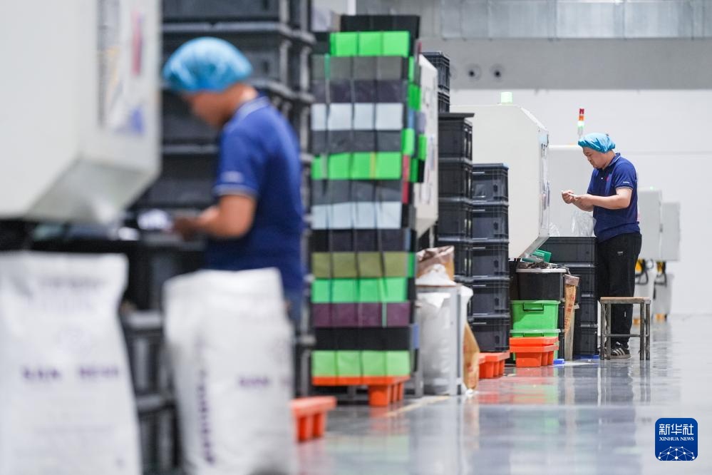 工作人员在扬州市杭集镇三笑集团有限公司绿色智能生产车间里忙碌(6月20日摄)。