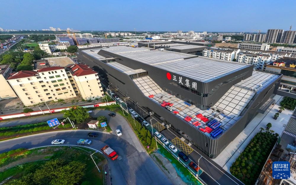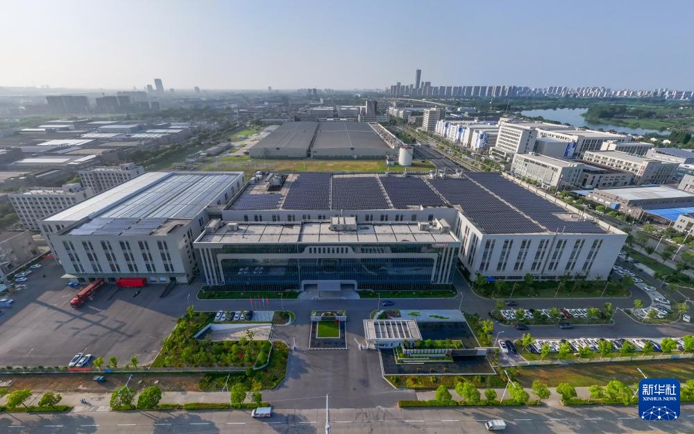 位于扬州市杭集镇的三笑集团有限公司绿色智能工厂外景(6月20日摄,无人机照片)。