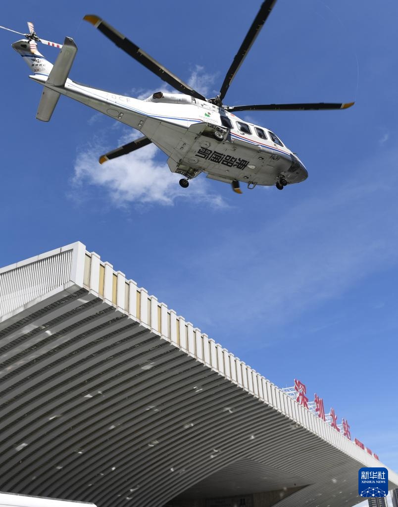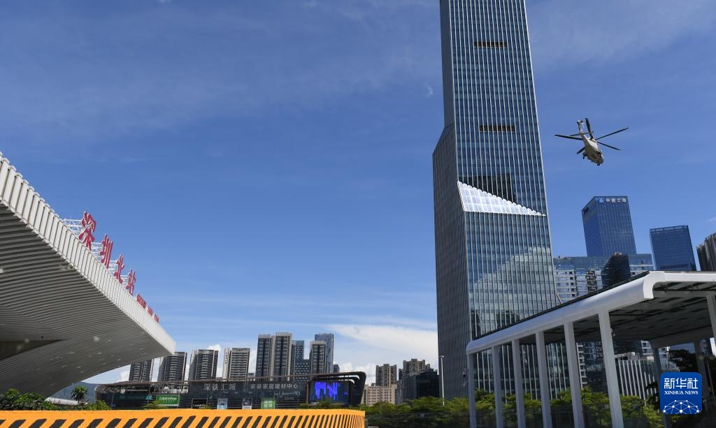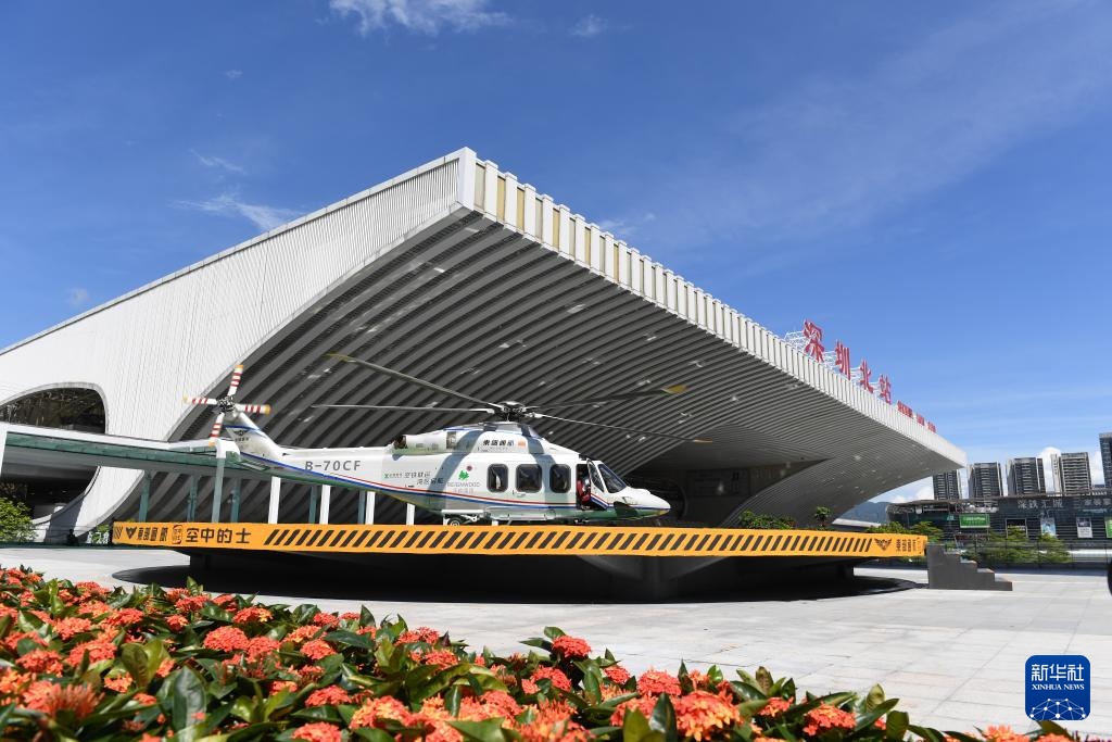 6月28日,直升机从深圳北站飞往深圳宝安国际机场。