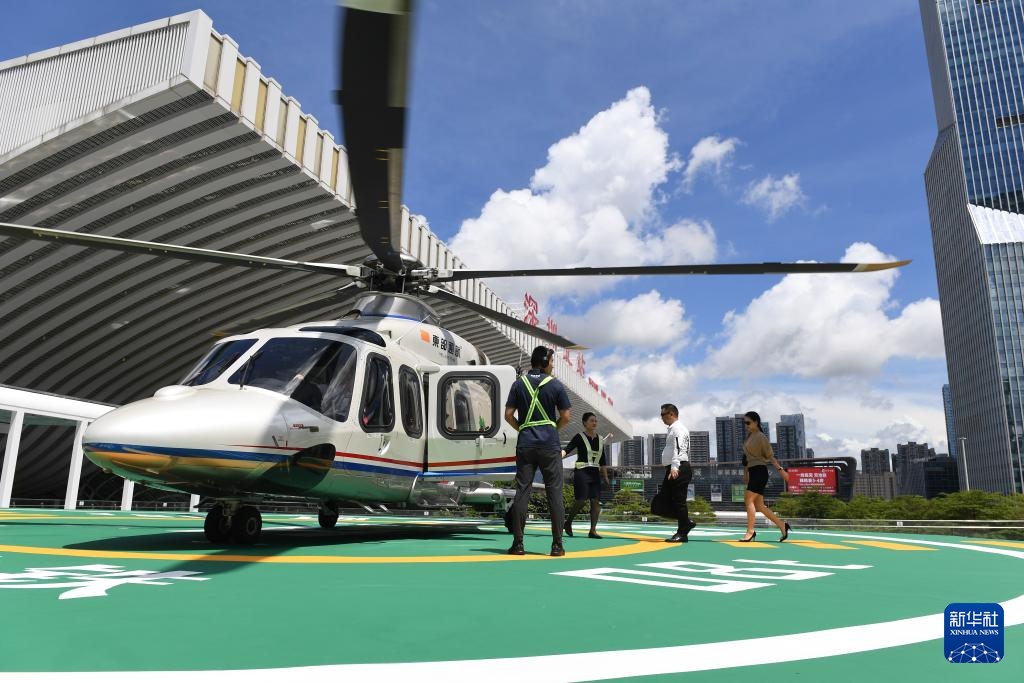 6月28日,乘客在深圳北站旁的停机坪搭乘直升机。