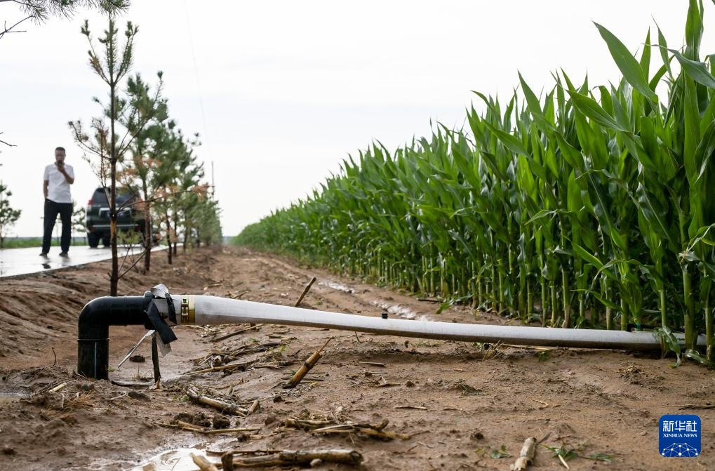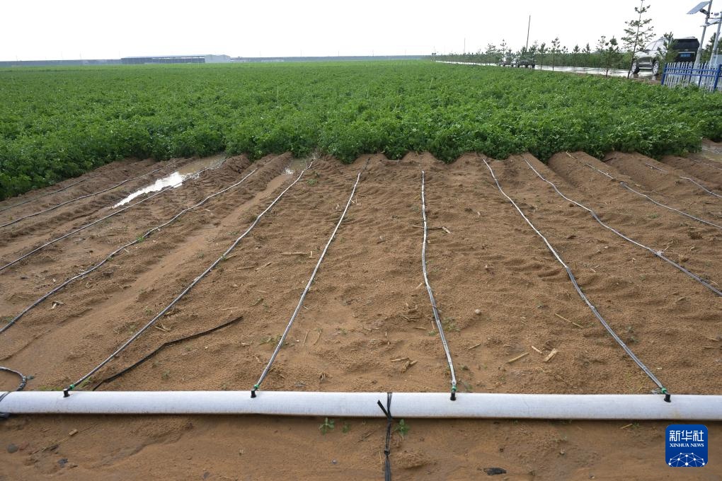 在陕西省榆林市榆阳区小纪汗镇大纪汗村拍摄的喷灌改智能水肥一体化滴灌项目试验田(6月26日摄)。