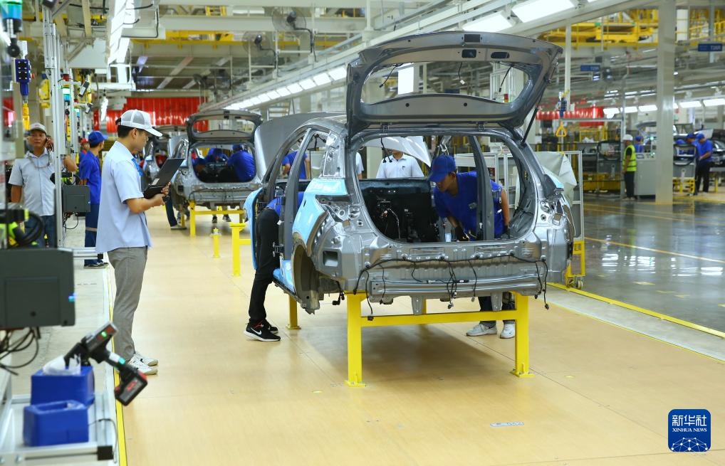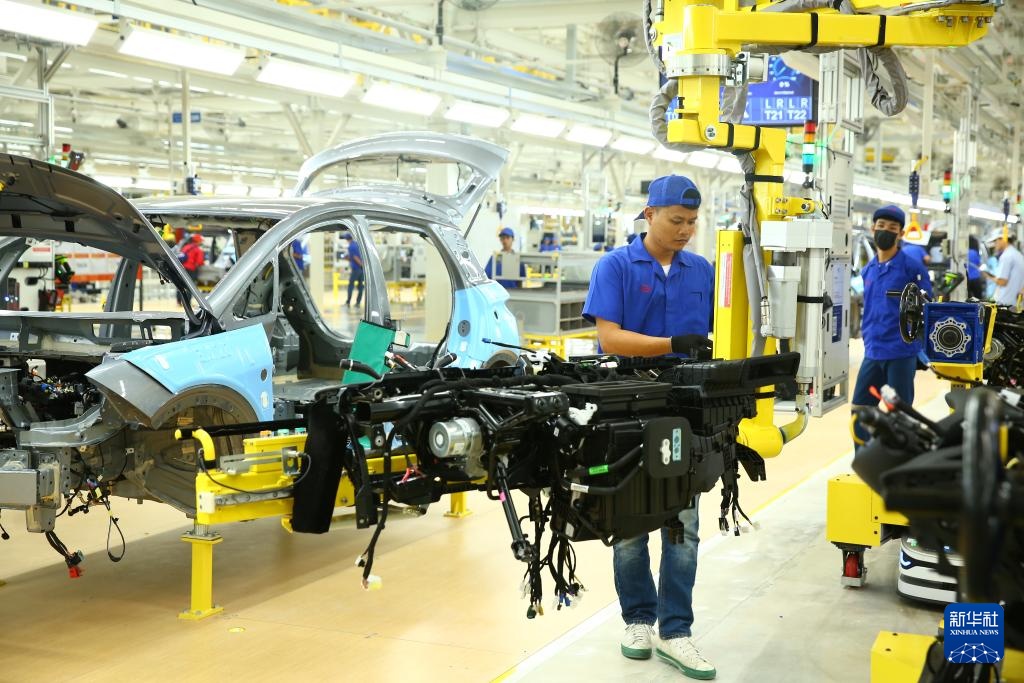 7月4日,工人在位于泰国罗勇府的比亚迪泰国工厂工作。